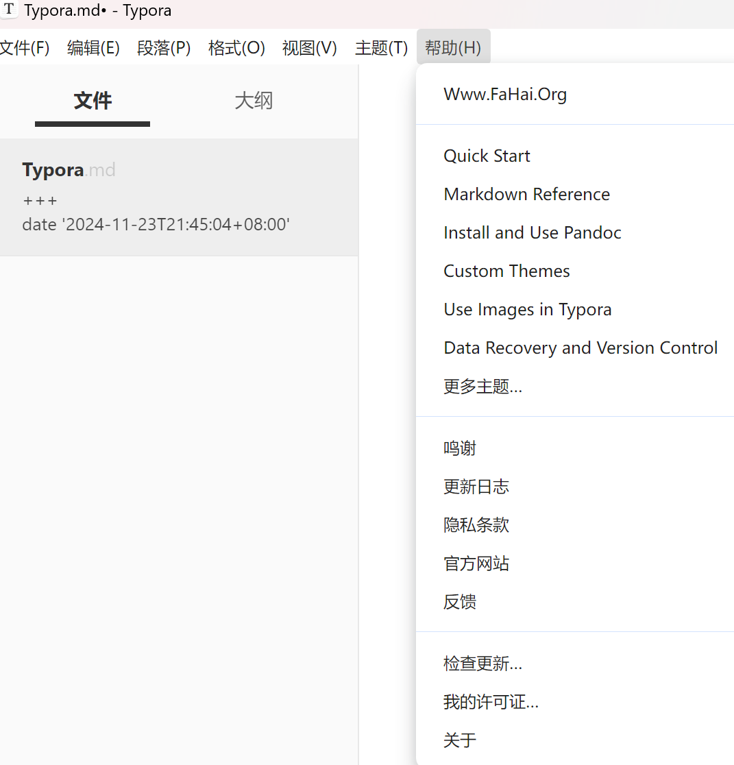 最后打开typora,点击侧边栏中的帮助,再点击关于激活即可。